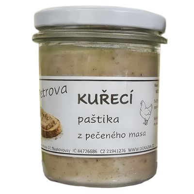 Složení: kuřecí maso 95%, jedlá sůl, pepř, cibule, máslo